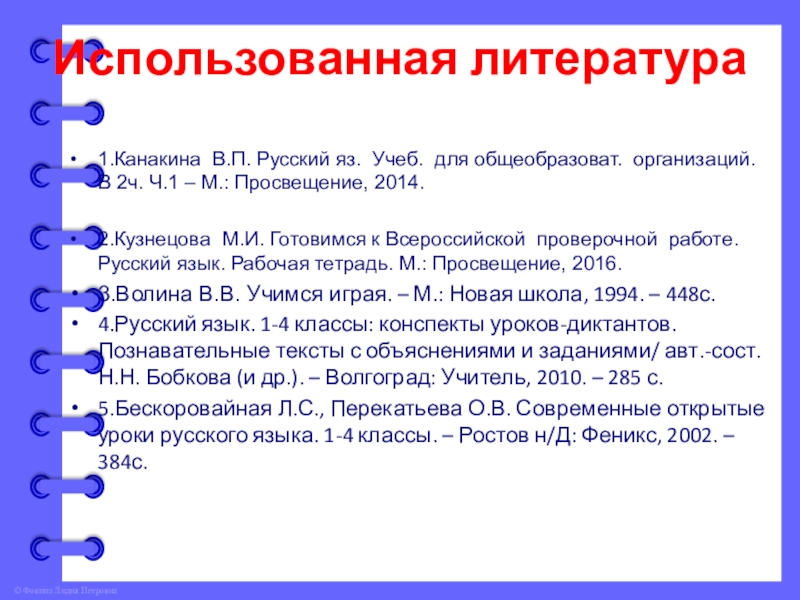 2.Кузнецова М.И. Готовимся к Всероссийской проверочной работе. Русский язык. Рабочая тетрадь. М.: Просвещение, 2016.