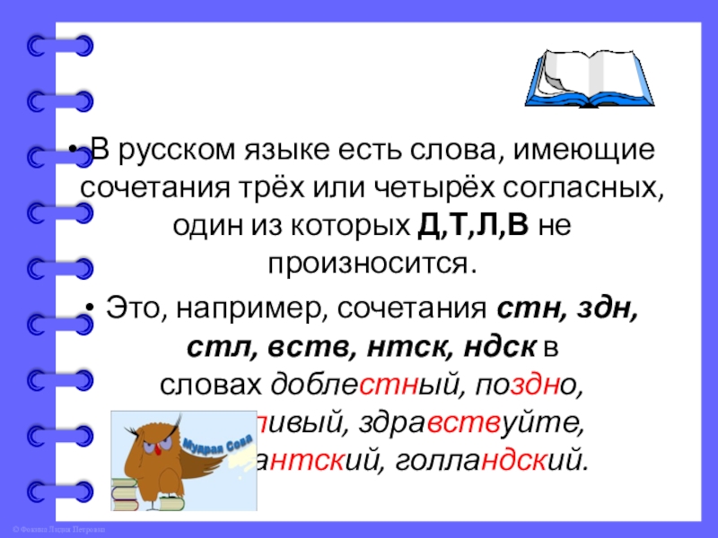 Слайд 3В русском языке есть слова, имеющие сочетания трёх или четырёх согласных,