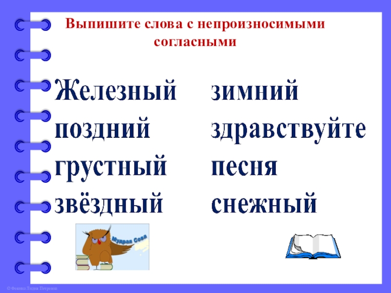 Слайд 6Выпишите слова с непроизносимыми согласными