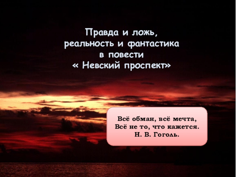Всё обман, всё мечта, Всё не то, что кажется. Н. В. Гоголь.