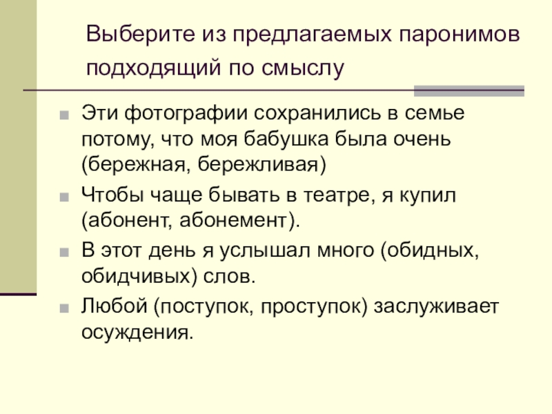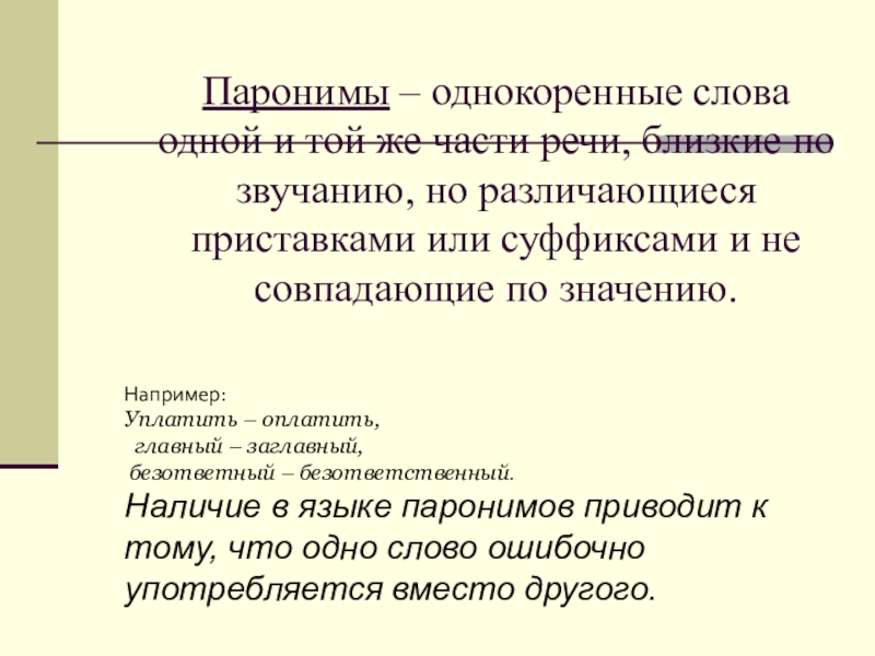 Наличие в языке паронимов приводит к тому, что одно слово ошибочно употребляется вместо другого.