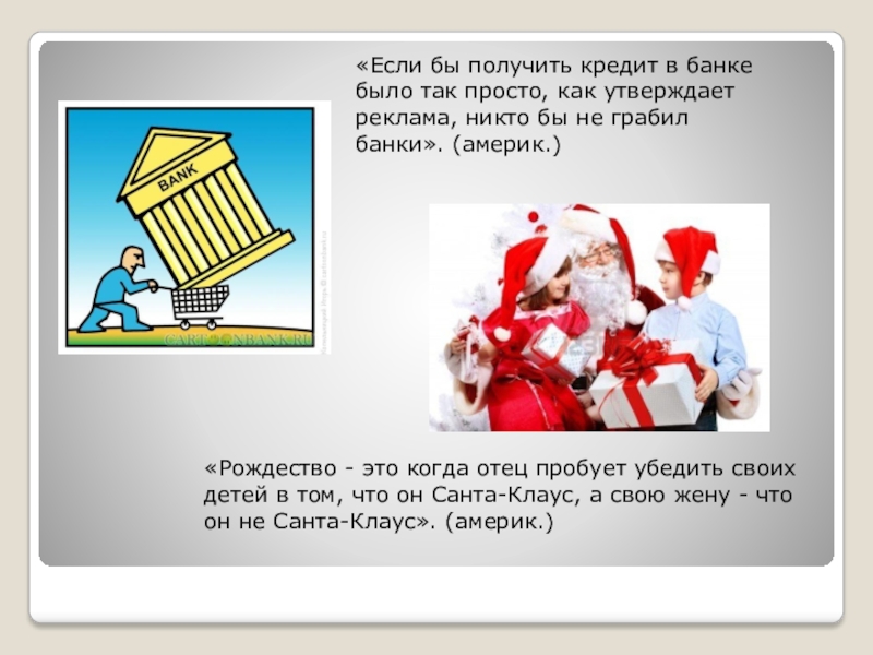 Слайд 9«Если бы получить кредит в банке было так просто, как утверждает