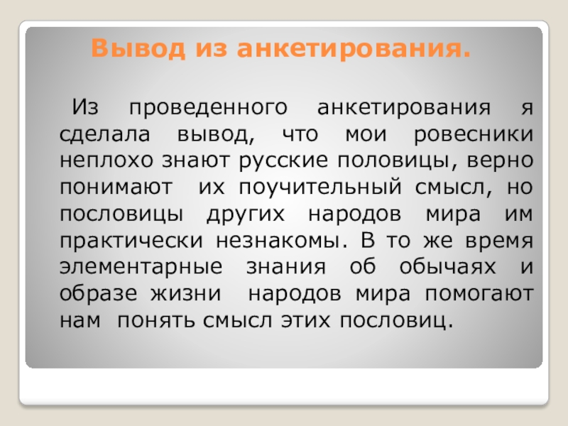 Из проведенного анкетирования я сделала вывод, что мои ровесники