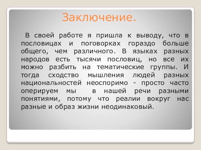 неплохо знают русские половицы, верно понимают их поучительный смысл, но пословицы других народов мира им практически незнакомы. В то же время элементарные знания об обычаях и образе жизни народов мира помогают нам понять смысл этих пословиц.