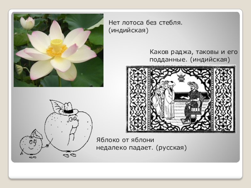 Яблоко от яблони недалеко падает. (рус.) - Каков раджа, таковы и его подданные. (инд.)