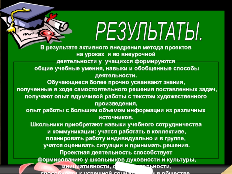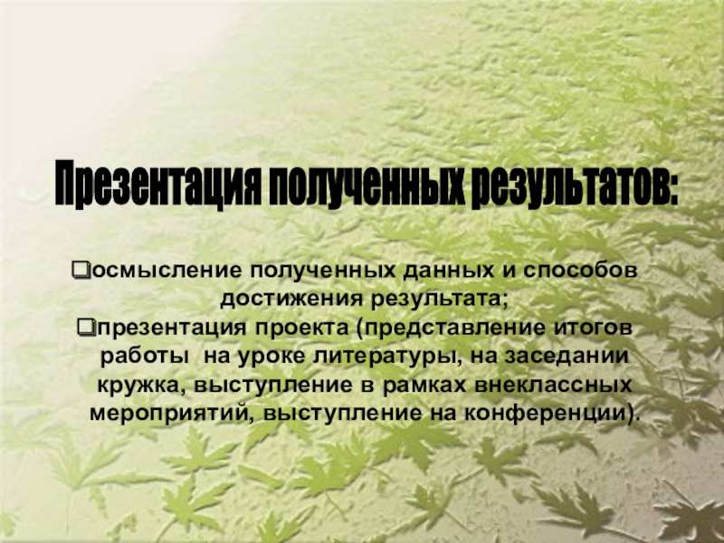 Презентация полученных результатов: