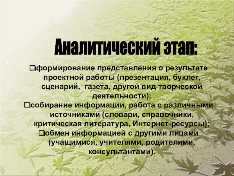 Аналитический этап: