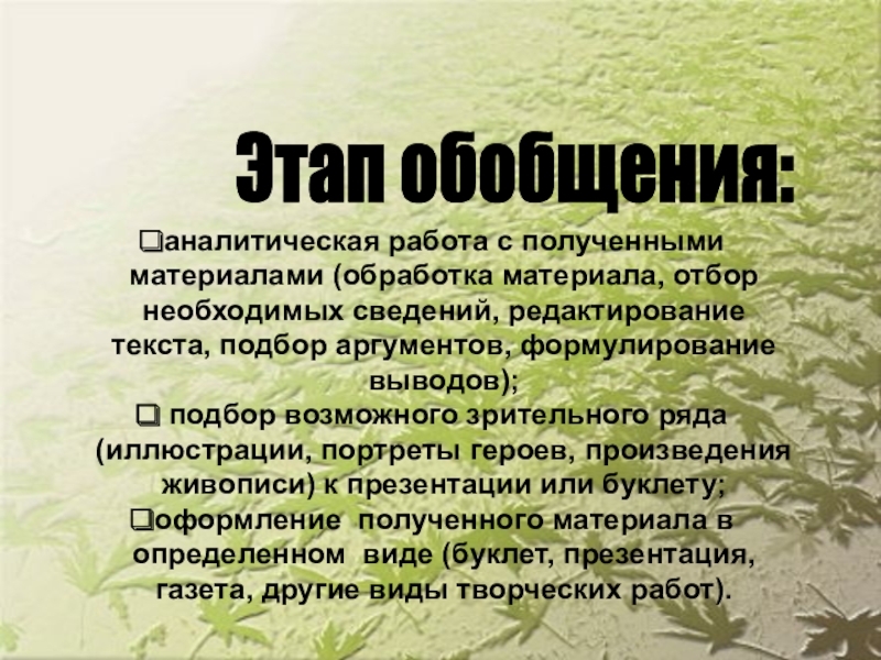 Этап обобщения: