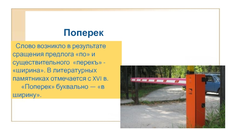«перекъ» - «ширина». В литературных памятниках отмечается с XVI в.