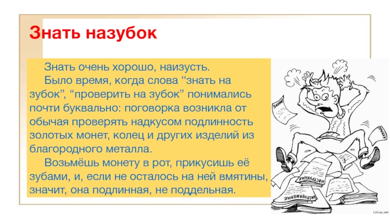 Слайд 16Знать назубок