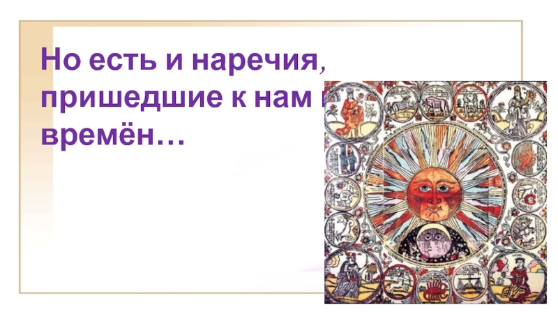Слайд 15Но есть и наречия, пришедшие к нам из давних времён…