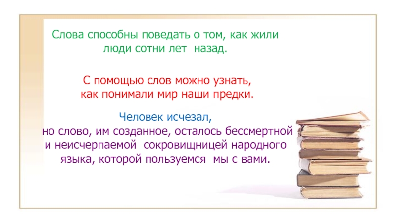 Слайд 26Слова способны поведать о том, как жили люди сотни лет назад.