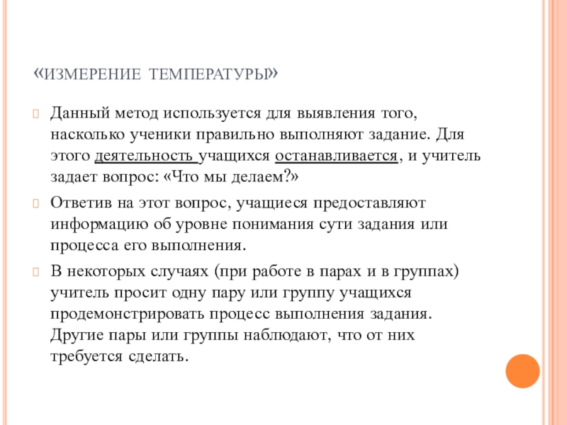 Ответив на этот вопрос, учащиеся предоставляют информацию об уровне понимания сути задания или процесса его выполнения.