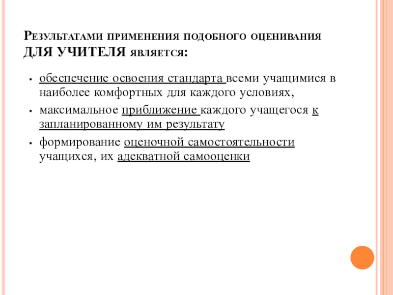 Слайд 3Результатами применения подобного оценивания ДЛЯ УЧИТЕЛЯ является: