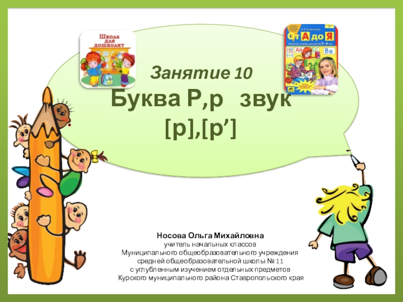 Занятие 10 Буква Р,р  звук [р],[р’]Носова Ольга Михайловнаучитель начальных классовМуниципального общеобразовательного учреждениясредней общеобразовательной школы № 11