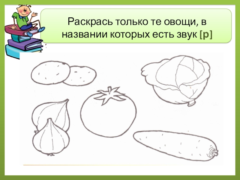 Слайд 7Раскрась только те овощи, в названии которых есть звук [р]