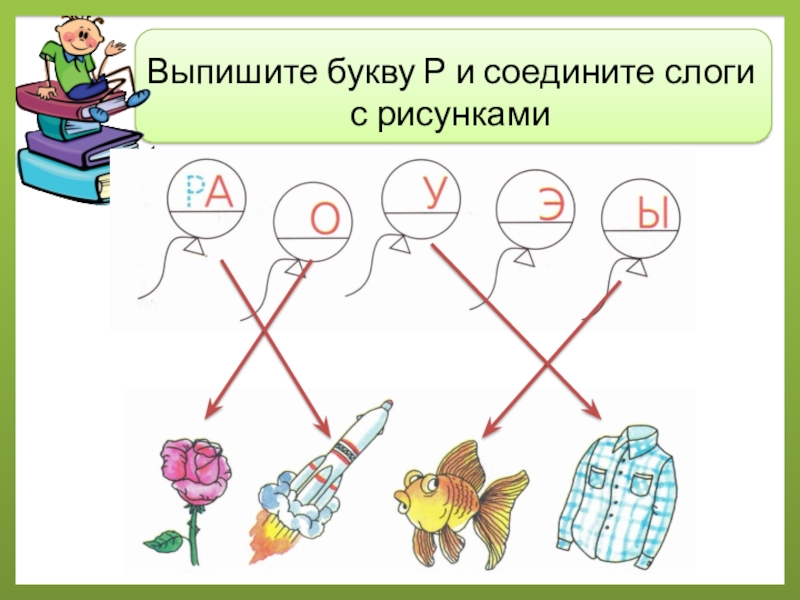 Слайд 8Выпишите букву Р и соедините слоги с рисунками