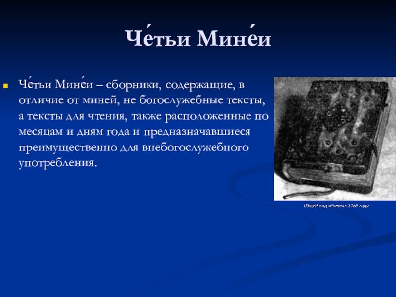 Четьи-минеи содержат огромный агиографический и церковно-учительный материал, охватывающий значительную часть круга чтения Древней Руси.
