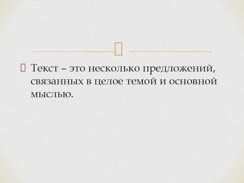 Слайд 14Текст – это несколько предложений, связанных в целое темой и основной