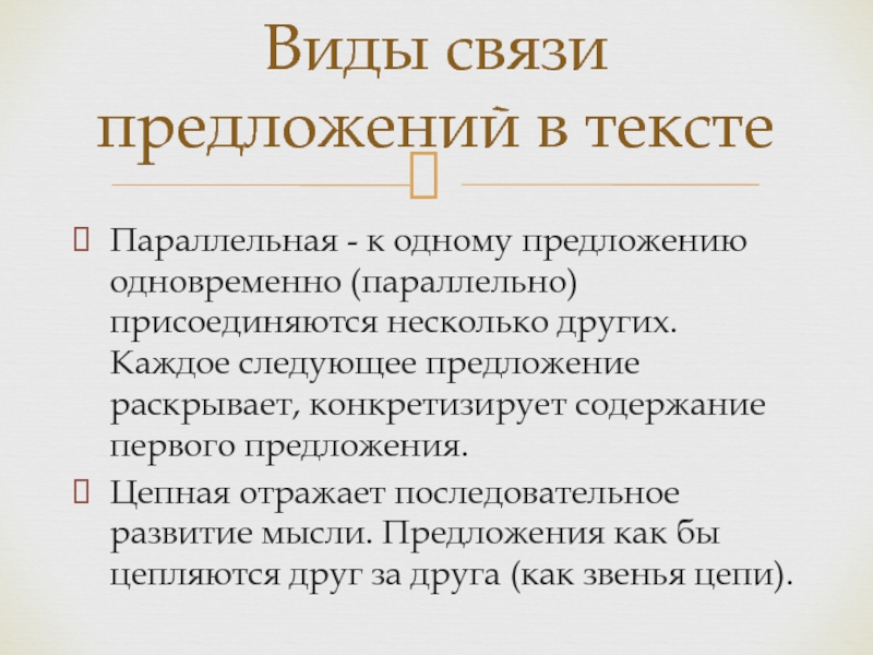 Слайд 16Параллельная - к одному предложению одновременно (параллельно) присоединяются несколько других. Каждое