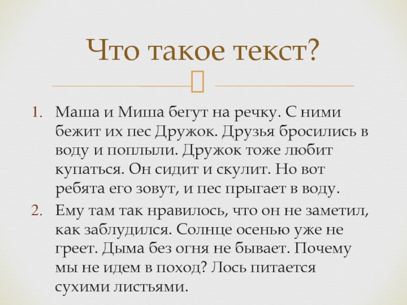 Ему там так нравилось, что он не заметил, как заблудился. Солнце осенью уже не греет. Дыма без огня не бывает. Почему мы не идем в поход? Лось питается сухими листьями.