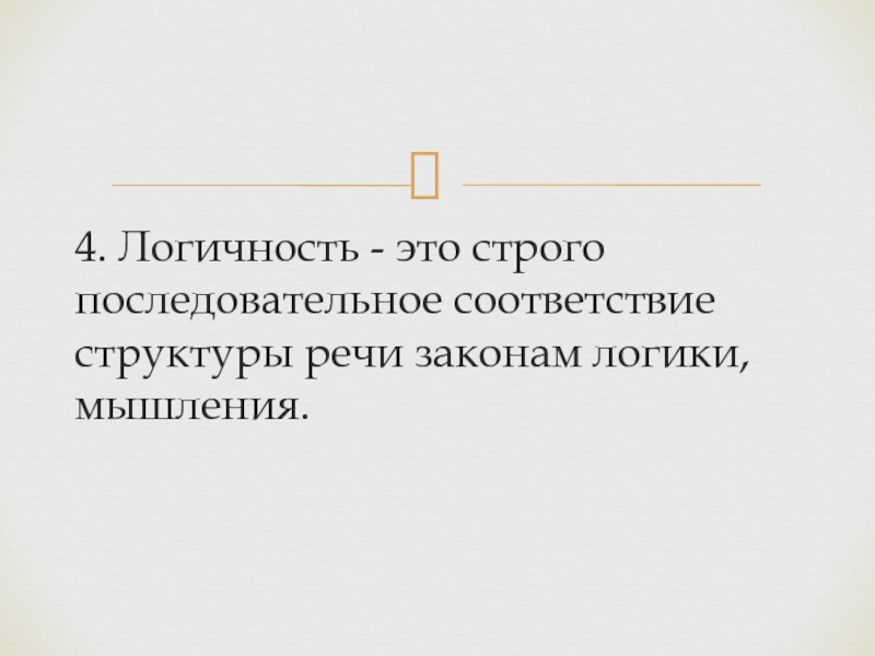 Слайд 84. Логичность - это строго последовательное соответствие структуры речи законам логики,