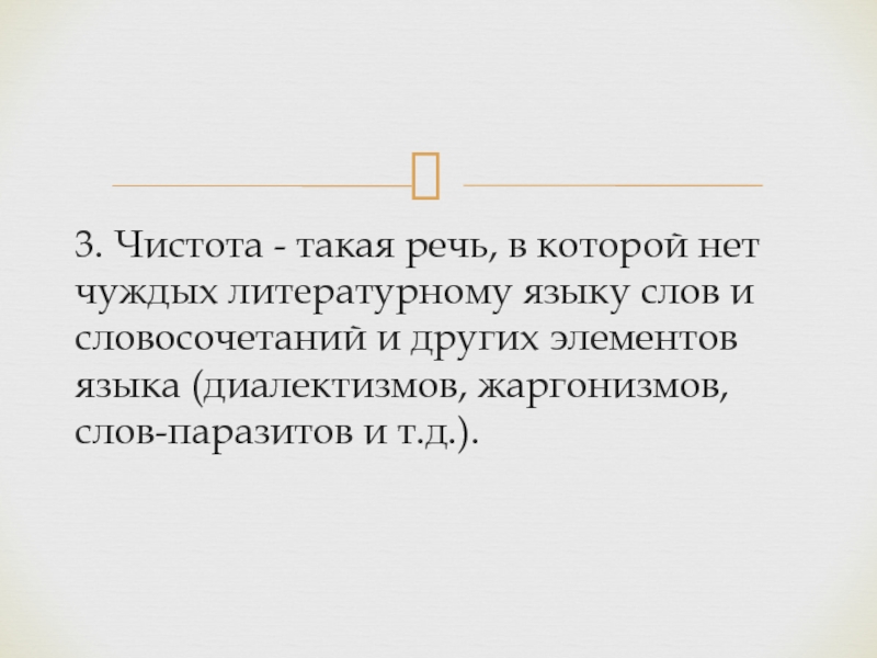 Слайд 73. Чистота - такая речь, в которой нет чуждых литературному языку