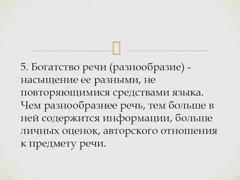 Слайд 95. Богатство речи (разнообразие) - насыщение ее разными, не повторяющимися средствами