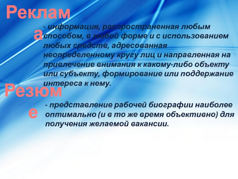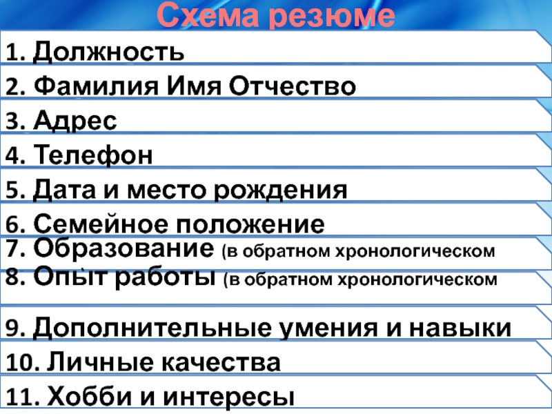 - представление рабочей биографии наиболее оптимально (и в то же время объективно) для получения желаемой вакансии.