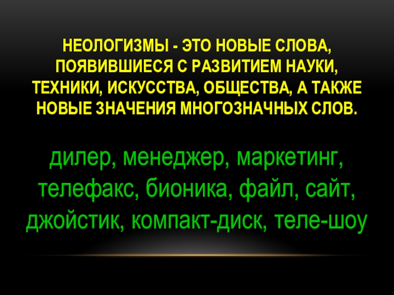 НОВЫЕ СЛОВА – НЕОЛОГИЗМЫ.