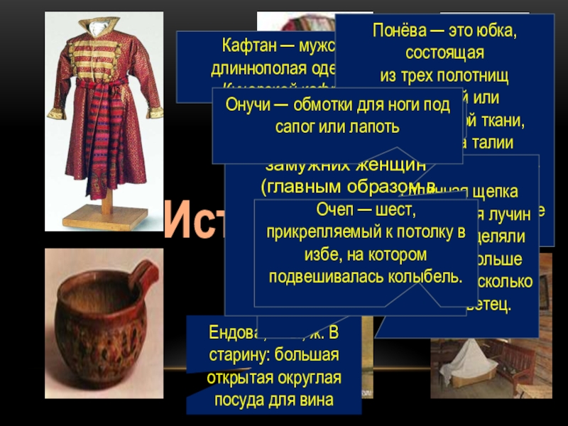 Онучи ─ обмотки для ноги под сапог или лапоть