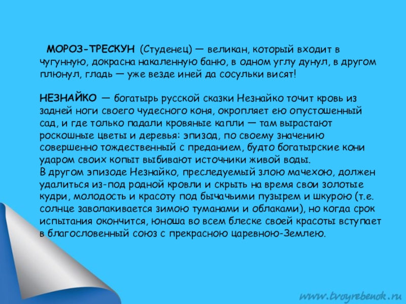 Слайд 12 МОРОЗ-ТРЕСКУН (Студенец) — великан, который входит в чугунную, докрасна