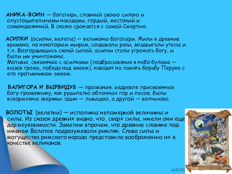 Слайд 11 АНИКА-ВОИН — богатырь, славный своею силою и опустошительными наездами,