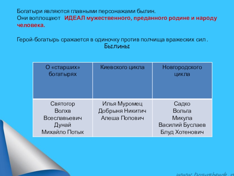 что и дает ему право представительствовать за все русское богатырство и выступать от его имени перед Владимиром Красное Солнышко.