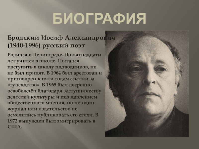 Бродский Иосиф Александрович (1940-1996) русский поэт