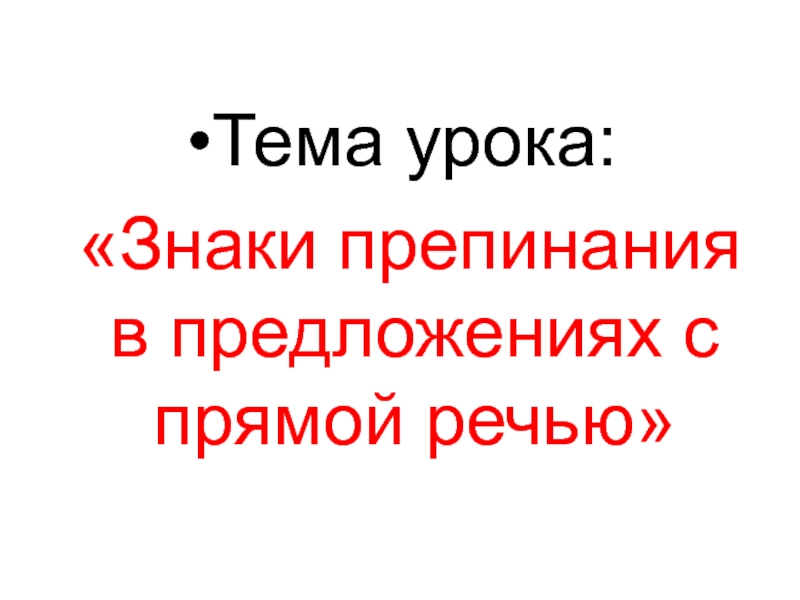 Тема урока: «Знаки препинания в предложениях с прямой речью»