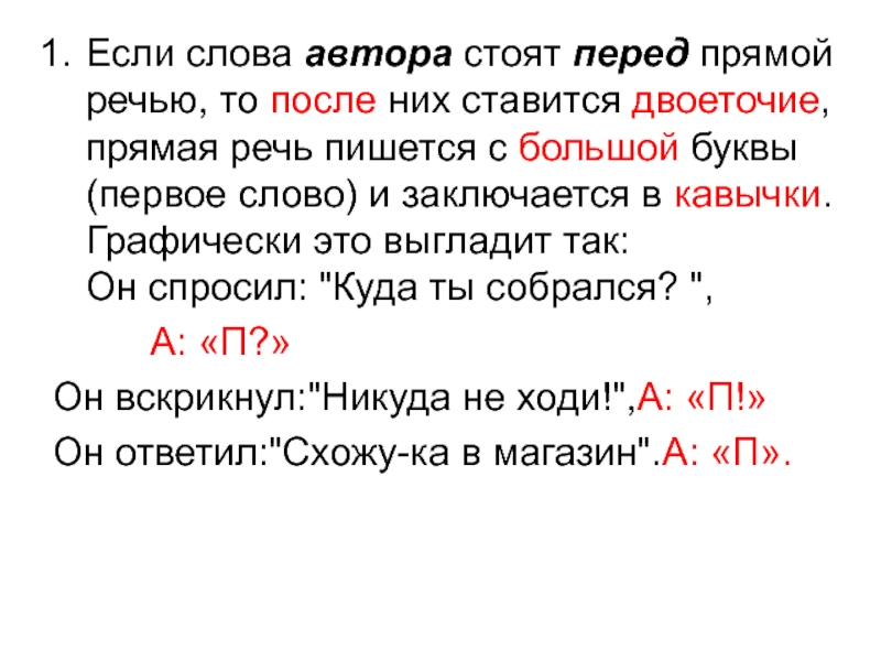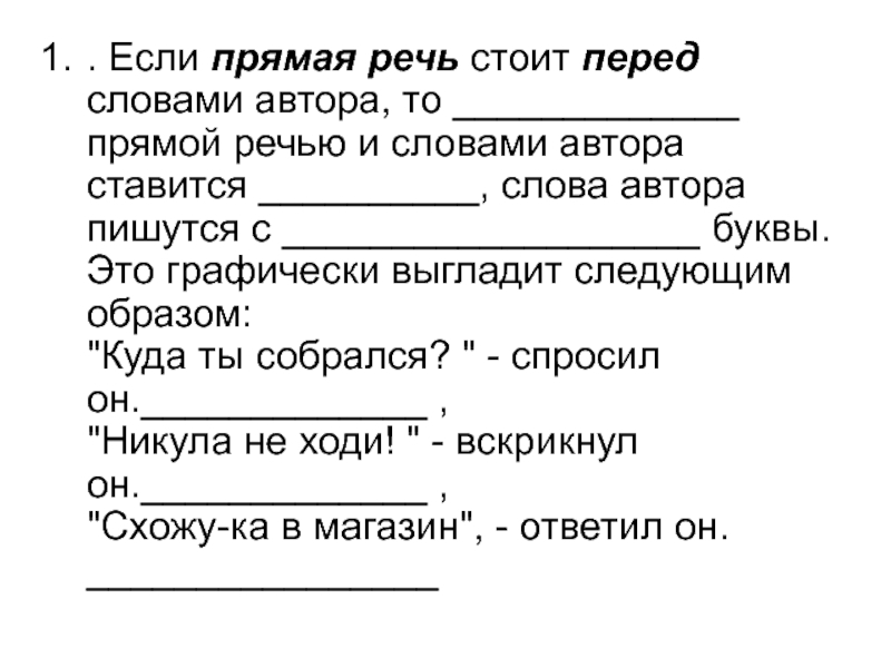 . Если прямая речь стоит перед словами автора, то _____________ прямой