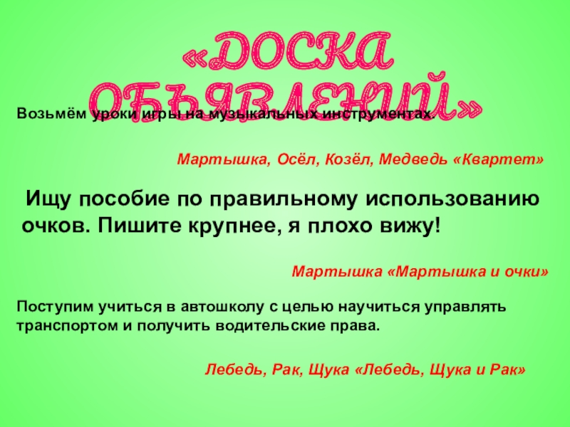 Лебедь, Рак, Щука «Лебедь, Щука и Рак»