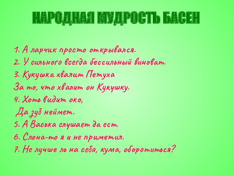НАРОДНАЯ МУДРОСТЬ БАСЕН