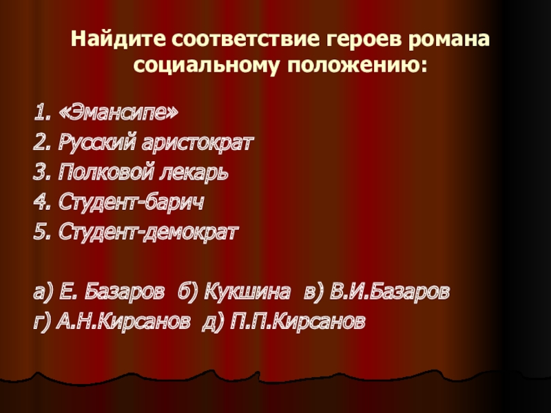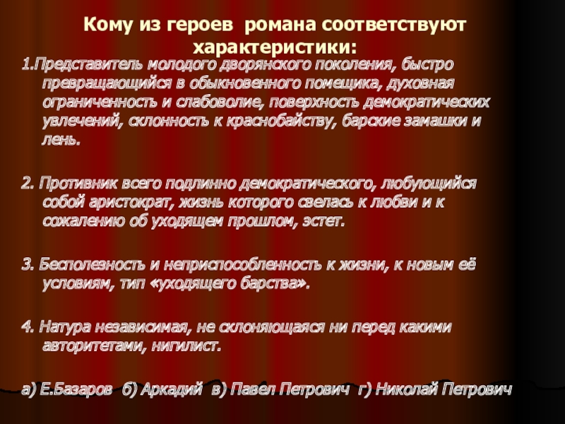 а) Павел Петрович б) Евгений Базаров