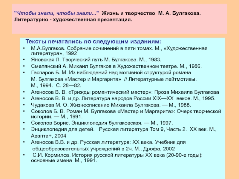 Яновская Л. Творческий путь М. Булгакова. М., 1983.
