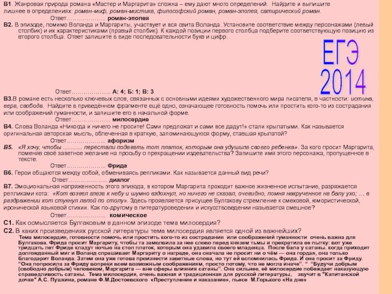 М. Булгакова «Мастер и Маргарита» // Литературные лейтмотивы.