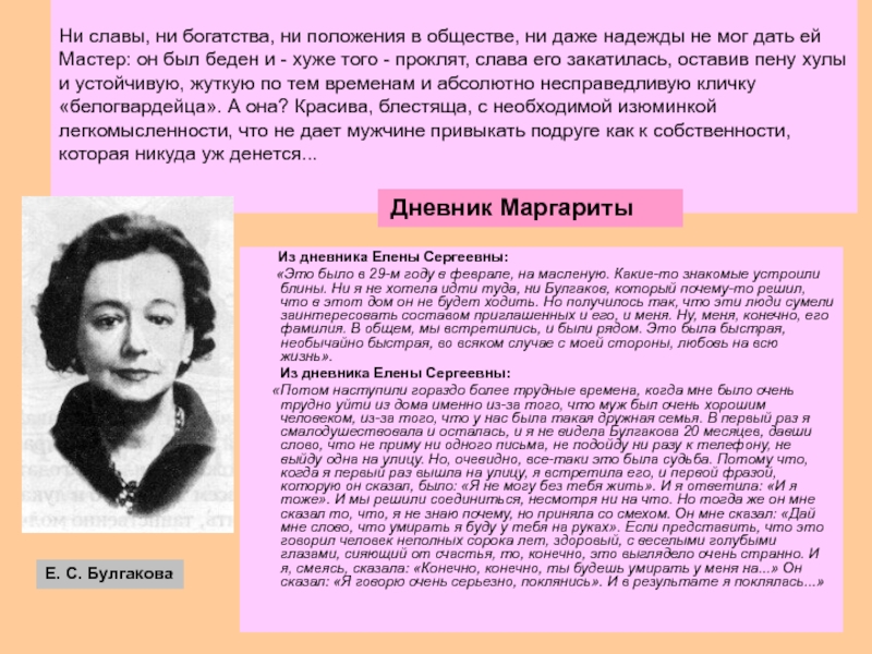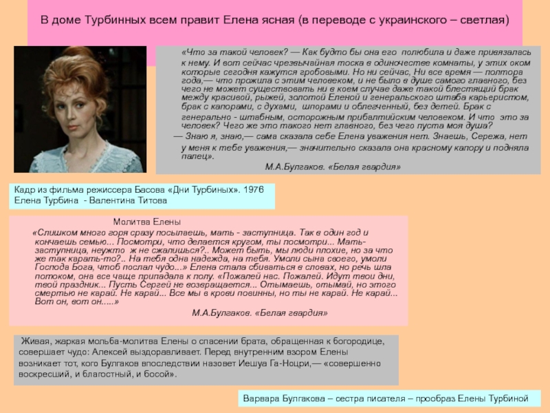 Елене Сергеевне, думая о судьбе своих