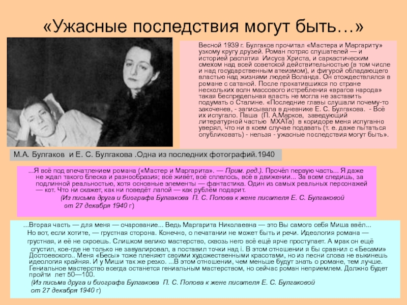 Булгакова было в руках разящее оружие —