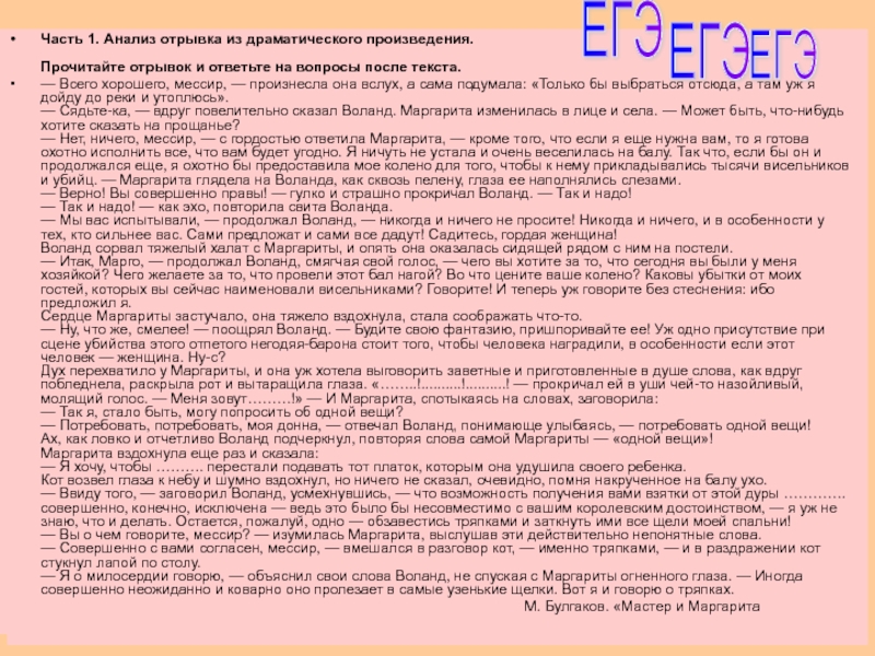 Часть 1. Анализ отрывка из драматического произведения.