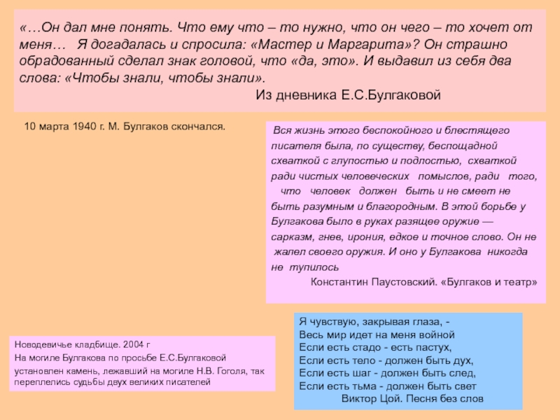 10 марта 1940 г. М. Булгаков скончался.
