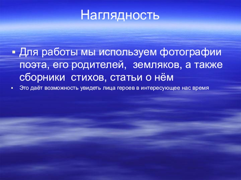 Для работы мы используем фотографии поэта, его родителей, земляков, а также