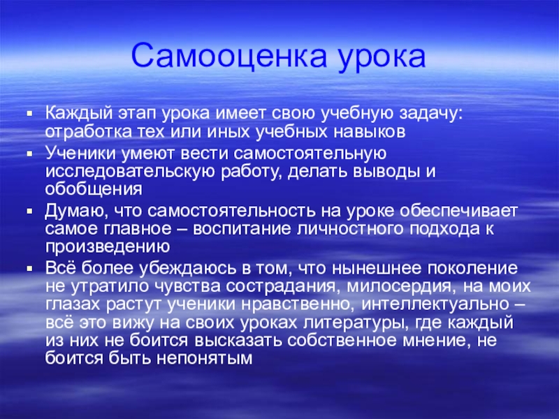 Думаю, что самостоятельность на уроке обеспечивает самое главное – воспитание личностного подхода к произведению