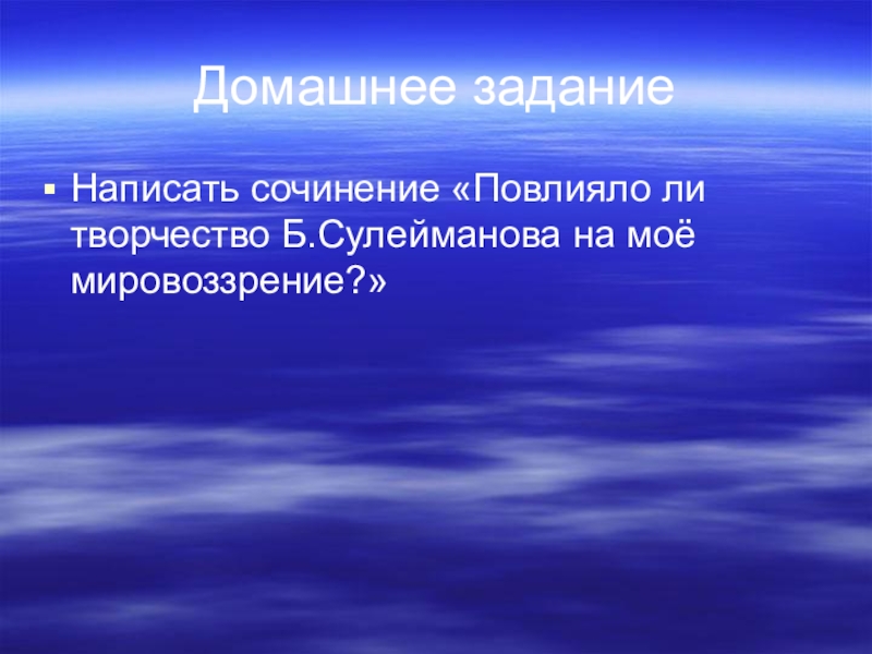 Написать сочинение «Повлияло ли творчество Б.Сулейманова на моё мировоззрение?»