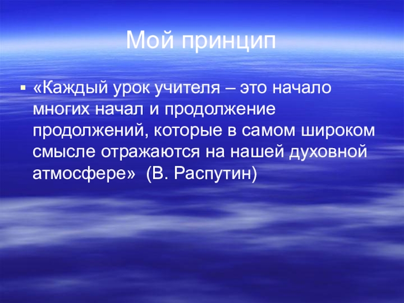 учителя – это начало многих начал и продолжение продолжений, которые в самом широком смысле отражаются на нашей духовной атмосфере» (В. Распутин)